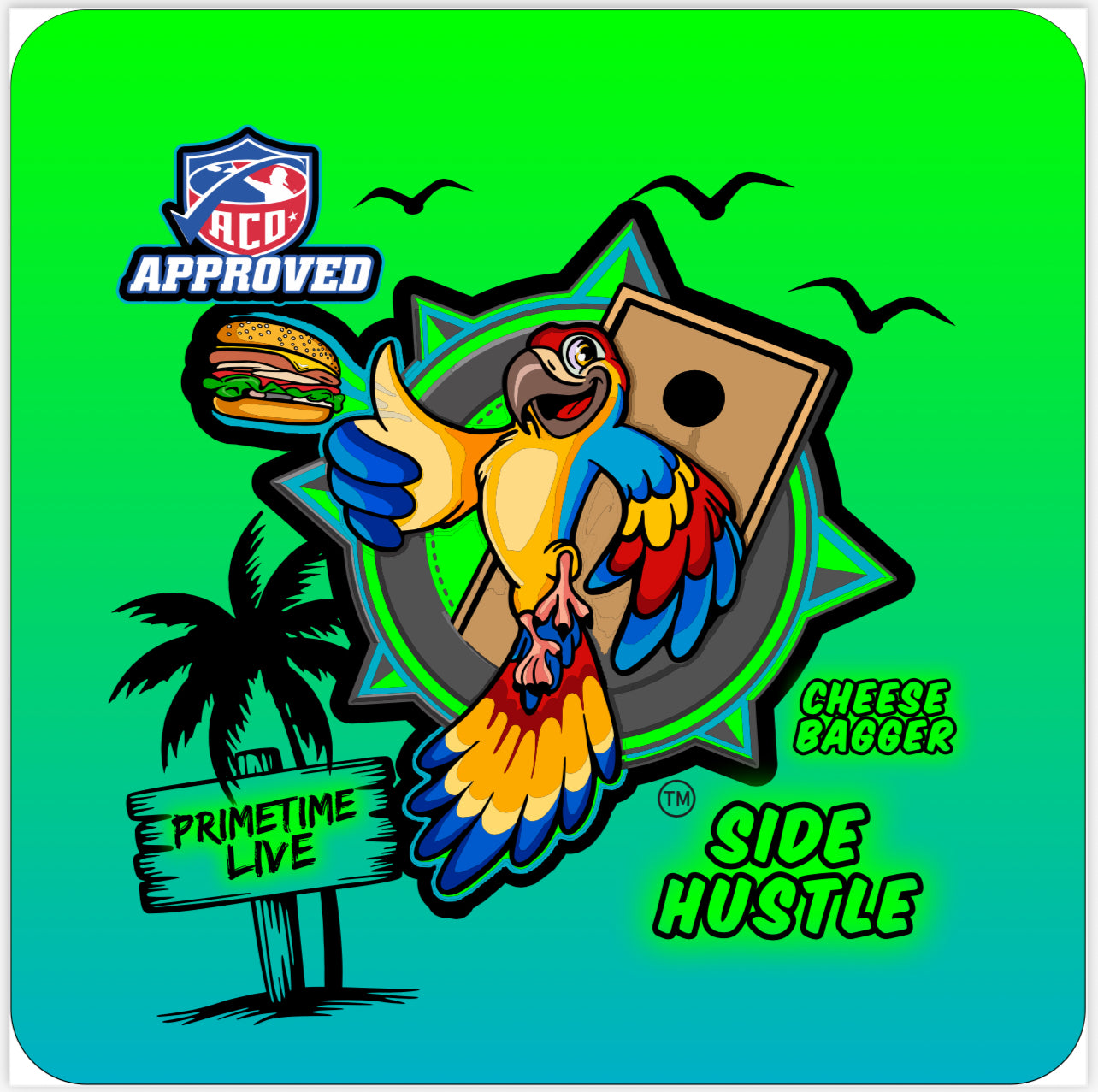 The Side Hustle is a dual sided cornhole bag, featuring a controlled slow side with a speed rating of 7 and a faster, more aggressive side with a speed rating of 9. Designed for players who prioritize precision and accuracy, this bag delivers consistent performance for strategic slides and competitive play.