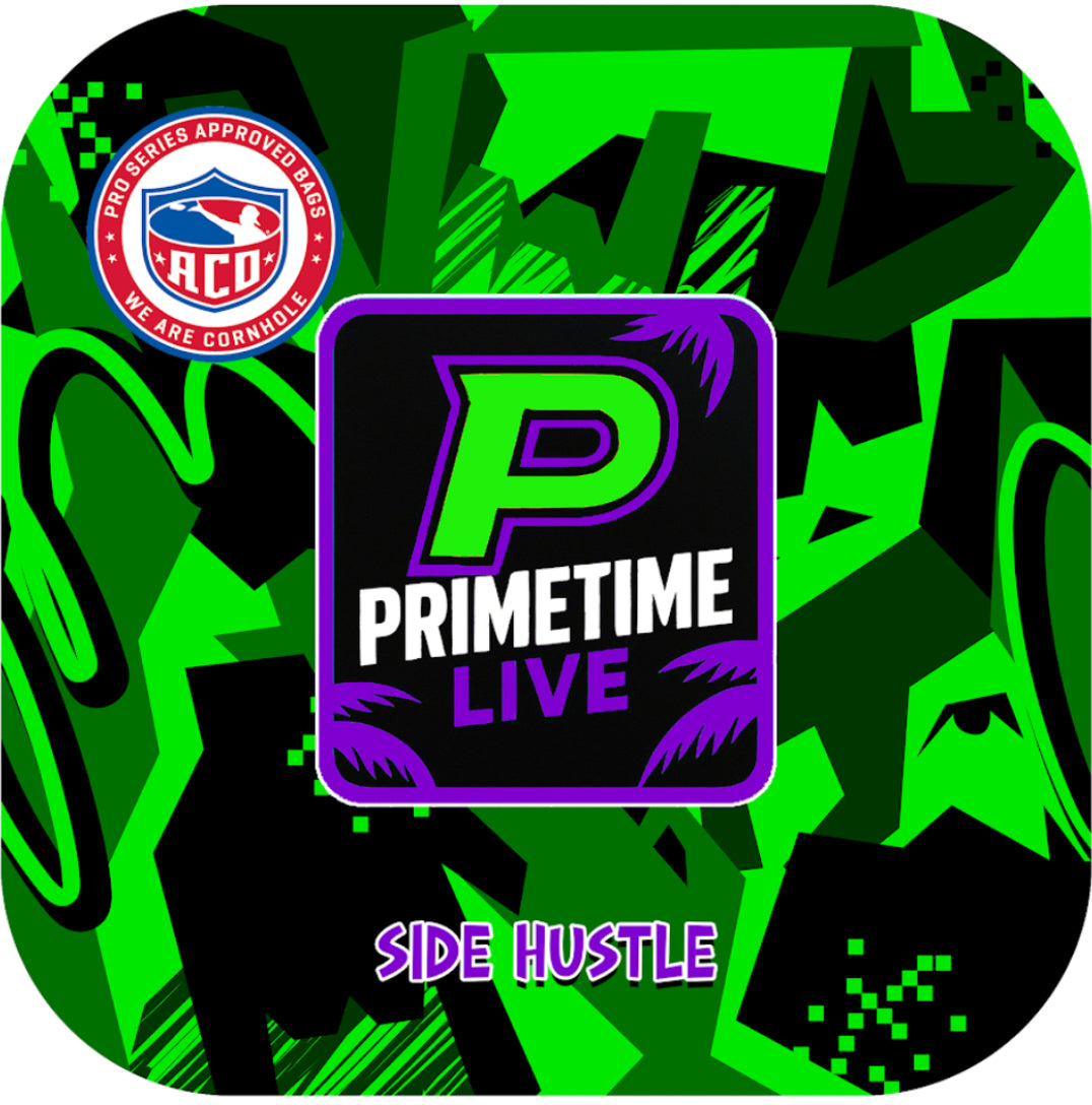 The Side Hustle is a dual sided cornhole bag, featuring a controlled slow side with a speed rating of 7 and a faster, more aggressive side with a speed rating of 9. Designed for players who prioritize precision and accuracy, this bag delivers consistent performance for strategic slides and competitive play.